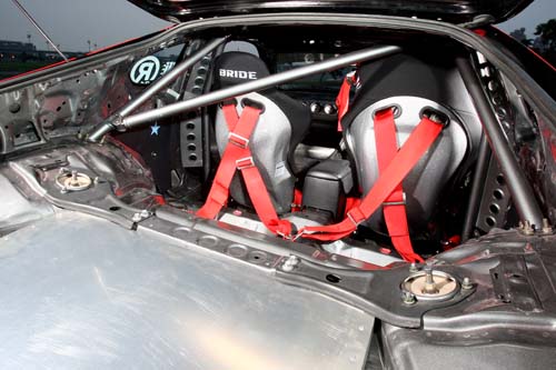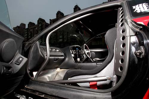 | 內裝部分並未施以點焊補強,而是僅以防滾架來補強車身,而基本上與車身接觸的六點部分採一般的螺絲固定方式,另外在較脆弱的B柱與A柱部分則另以鋼板施以熔接,消除車體高速甩尾時的扭曲率。 |