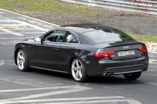 同樣在紐伯林北賽道上,另有一部毫無偽裝的小改款S5 Coupe正在進行測試。主要的更動重點在於車尾的LED尾燈組,已經更換為與A7 Sportback相當類似的造型,預計這種細部修飾也將會在小改的A5 Cabrio敞篷車與A5 Sportback五門車型上見到。