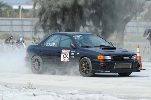 | 季軍車號:125姓名:陳建名店家:GS grage車輛:GC8成績:反應時間/秒經過時間/秒總時間/秒末速度km/h第一回合0.505/11.973/12.478/208.49第二回合起跑失敗起跑失敗起跑失敗起跑失敗第三回合0.528/11.799/12.327/184.30該車使用EJ20引擎本體,腹內換上Cosworth 2.2 kit,包括活塞、連桿、曲軸,而渦輪方面選擇HKS 3037S,並使用新版的V-Pro 3.3輔以1.9bar高增壓。陳建名表示對這次舉辦活動的Option給予相當高的肯定,且希望本刊可 |