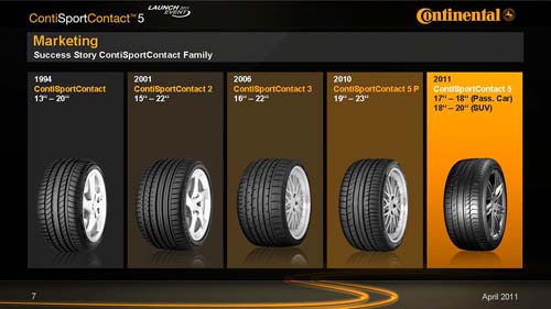 | 自1994年首度推出CSC系列高性能跑車胎之後,Continental平均每5~6年會發表新一代的版本,此次的CSC 5為第四代。 |