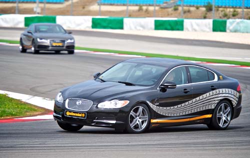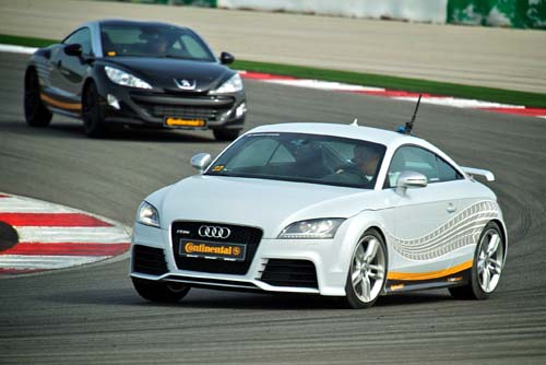 即便說得再仔細,都不如親身體驗要來的讓人印象深刻,此次原廠為了這次的全球媒體試駕活動,特別包下位於葡萄牙Faro近郊的Algarve Motor Park賽車場,同時進行CSC 5與CEC 5的輪胎試駕活動,相較於CEC 5的省油與濕滑路面體驗,最讓人期待的當然還是在全長4692m的F1等級賽道中體驗CSC 5極限狀態下的演出。沒有坐在身旁的指導車手、沒有任何減速椎桶與限制,試車前講解的最後一句話就只是──「好好享受」;接下來的場景開始變得混亂,每位記者就像是第一次走進玩具反斗城的三歲孩童般,開始往心目中最想要的那部車狂奔。Audi TT-RS、VW Golf R、Mini Cooper S JCW、Fiat 500 Abarth、BMW 135i Coupe,多款尚未引進國內市場的高性能車著實令人躍躍欲試,甚至讓筆者差點忘了這次活動的主要目的。從Golf R、TT-RS一直到前驅小鋼砲500 Abarth與Mini Cooper S JCW,這條CSC 5不管是搭配那一種型態的動力系統,在面對高速與連續彎道的極端條件下均保有極為穩定的循跡性與抓地力,也讓筆者在熟悉賽道的第一圈之後便敢放膽全力衝刺。它是一條高速街道胎,但在賽道中的表現卻相當亮眼,即便過彎時的強大離心力很容易就逼出輪胎抓地力的極限,但CSC 5在滑動的過程中卻依然讓人信心十足,從輪胎所回饋的路感顯示它仍非常穩定,而且抓地力與駕駛者之間有著非常直接的互動,油門踩放與煞車減速的控制力道都會改變車輛的行進路線,一旦掌握了此特性,煞車點會愈來愈深,加速出彎的時間也會愈來愈早,就算前輪開始推頭、後輪開始往外擺動,整部車的動向還是在自己的掌控中。CSC 5是一條非常有趣的高性能跑胎,它的目標不是讓車子成為一部軌道車,而是展現最佳的平衡點,在舒適性、噪音、耐用性、安全與駕駛樂趣之間尋求一種和諧的動態表現,Continental,它辦到了!