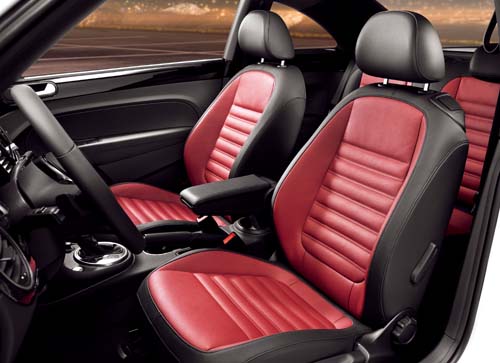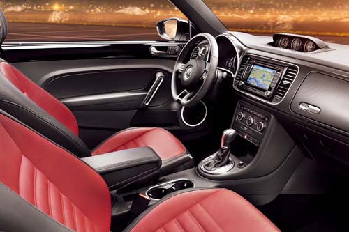 Beetle的內裝經過徹底重新設計,VW的工程師在設計時特別注重質感以及不刻意賣弄復古,精心設計的結果讓這部車擁有十分獨特的車艙風味,它在帶著些許經典氣氛的同時,卻又同步擁有新車的科技風味。在Beetle車上我們可以看見全新設計的各式內裝組件,為了營造車輛的獨特風格,許多部件都採用獨立設計,與VW大量共用組件的風格有些不同。新一代車款強調運動氣息的設計在內裝也可看出些許跡象,在較高階的運動化車款上,VW甚至為它裝上三環錶,強調車輛的運動氣息。