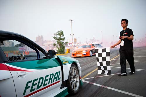 本次活動T.D.R邀請了知名的甩尾車手王昱仁、馮仁稚、黃立綱、林宥志、郭佑瑲、徐雲泰、劉家豪、潘志豪、羅緒庭、黃年暄、李承鴻、周翰陞、童江輝、賴恩宇、唐福生等15位高手,前來現場共同表演精采的甩尾PK對決,現場觀眾更可以捐款試乘的方式,來親自體驗有如東京甩尾般的感受,而所有捐款將由創世基金會統籌使用,來幫助弱勢團體。而在這次活動中筆者應主編單位邀請,與德軒掌門人鄭裕仁共同擔任評審工作,而筆者之前也擔任過多次該活動的評審,對於這項工作並不陌生。由於比賽是比較偏向表演性質,因此評分標準是以精采程度為最大依據,雖然甩尾比賽有許多重點,但是觀眾並不一定懂其中的道理,若兩車手分數相近時,如果現場觀眾是無法看出誰的實力比較好,因此會就比賽的精彩度再進行多次PK,直到很明顯的讓大家都看出勝負才會作決判,這樣的方式雖然與D1有些差異,但比較能夠受到觀眾的認同。