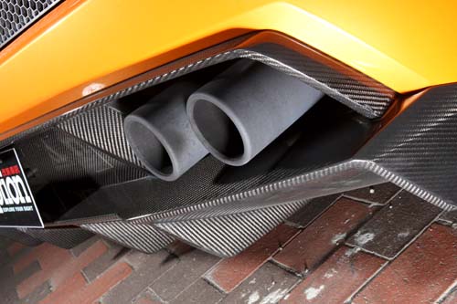 | 更為顯眼的碳纖維空力套件大量使用於LP570-4 Superleggera,包含大型後下分流器與排氣尾管都是特殊之處。 |