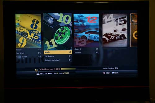 | 每個賽事選單內均有許多小型系列賽,需要靠累積經驗值來解開。 |