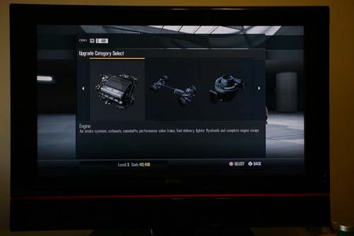 | 遊戲中共有八大改裝項目,每安裝一項改裝品,車輛性能點數會隨之提昇。 |