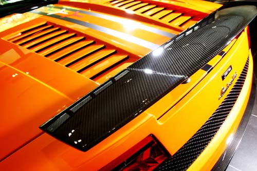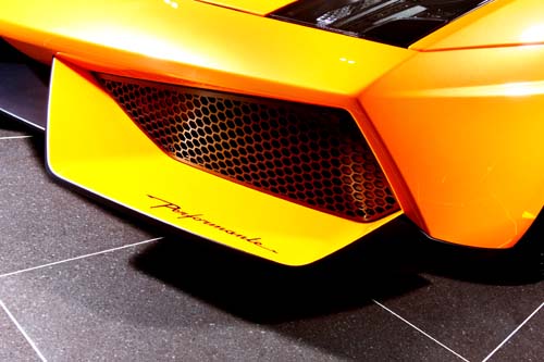 | 為突顯Gallardo LP570-4 Spyder Performante在外觀上的獨特性,前導流翼採用與車身同色塗裝並加入Performante字樣。 |