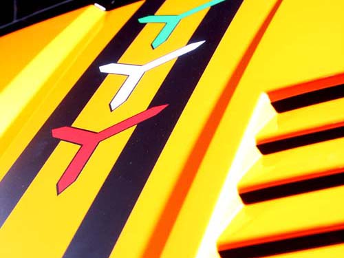 | 後引擎蓋中央除了加入兩道黑色車身條紋之外,還配有專屬的綠、白、紅三色標誌,代表其產地來自義大利。 |