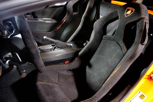 | 車內兩張桶型賽車椅的造型設計取材自限量的Reventon Roadster,以麂皮包覆並同樣屬於碳纖維材質。 |