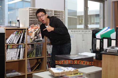 不曉得眼尖的觀眾有沒有發現,其實負心漢溫瑞凡背後的書櫃上,放得滿滿都是Option改裝車訊,想不到看似斯文的溫經理,心裡面其實對改車充滿興趣,難怪後來要把Passat CC賣掉,其實他應該是想換台GTR吧!筆者的位置則是被凡哥的心腹「阿唐」給霸佔了,不知道筆者藏在抽屜裡的「松X楓」寫真集有沒有被發現,但是看他的表情應該是看得滿開心的。