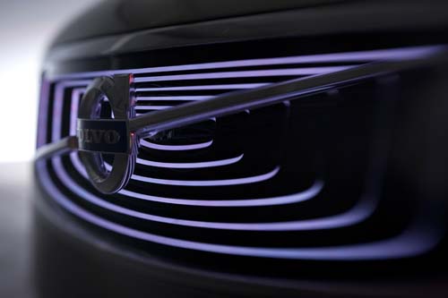 | 搶眼的Volvo金屬廠徽,設置在相當獨特、猶如同心圓造型一般的水箱護罩上。 |