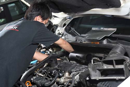 為了這個單元這特別厚著臉皮有勞建進的專業人員代勞施工,當產品在安裝之前筆者就與建進豪哥簡單的討論一下,一般來說其實目前的空氣芯也都還是採用濕式及乾式兩大類為主,而濕式濾心的好處就在於進氣量快又大,相反的濾塵效果也就比較差了點,因此像是K&N這類純濕式產品,安裝前都必須在表面塗上一層薄薄的油,以防止灰塵吸入,也因為這層濕濕的油所影響,在強大的進氣效率下會將這層部分的油吸入,運氣好的就進入燃燒室燃燒,運氣不好的則是就會卡在空氣流量計上,導致空氣流量計訊號異常,因此流量計必須時常利用酒精來清洗及自然風乾才行。不過隨著科技的躍進下,現在的濾芯在出廠時就會噴上一層專用的特殊油,這層油就算是用手去觸摸也完全感覺不到,因此更不會有影響空氣流量計的問題產生。