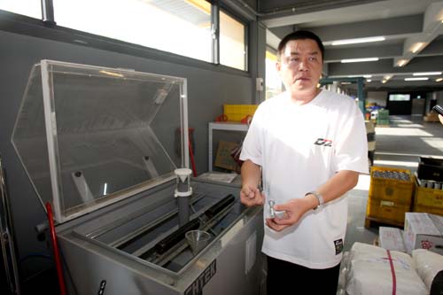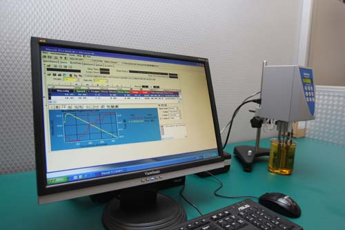 | 這台油質測試器看來雖不起眼,但是售價可是超過百萬元之譜,坊間許多機油商還不見得都有這種專業的測試儀器,但是位了確保避震器阻尼油的品質,D2還是斥資購入這套昂貴的檢驗設備。 |