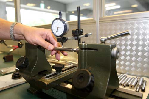 | 所有避震器的軸芯都必須經過「同心儀檢測機」的測量,檢查外徑是否真圓、內徑是否有偏差,這點對避震器來說可是相當重要的一環,一但有些微的誤差可能就會導致避震器漏油的狀況。 |