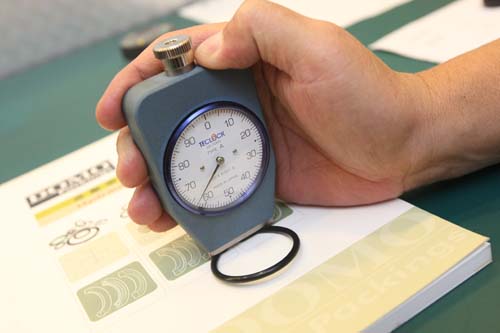 | 橡膠製品雖然軟趴趴,但是還是可以透過特殊的「橡膠硬度測量器」來測量是否合乎所需之標準。 |