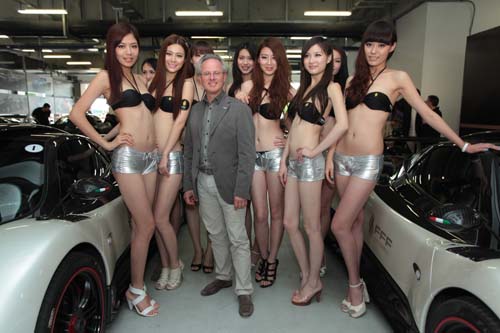 | Pagani先生今年除了前來參與超跑嘉年華活動外,也不忘與身後美麗車模合影留念,能享受美女成群的福利筆者猜測明年活動中應該還是少不了他。 |