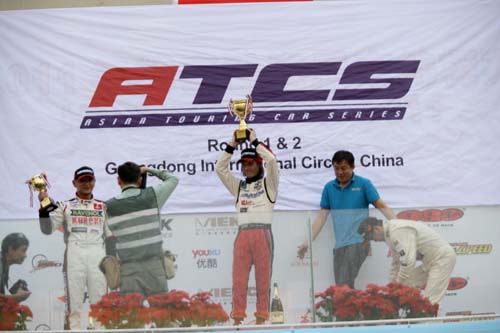 到了星期六的正式測時排位賽,正式下場四圈阿杉哥對於初次參賽使用的Hankook光頭胎特性稍微摸熟後,便做出了1分22.4秒的單圈成績,此時車隊對講機傳來已暫居P.P.桿位的好消息,但阿杉哥駛回Pit後卻仍要求技師修正胎壓與前防傾桿的軟硬設定,為的是希望繼續下場做出更快的桿位成績,企圖正式締造GIC賽道的最速單圈,沒多久阿杉哥果真以1分21.834秒成績奪下桿位,並且領先第二名由潘德俊所駕駛的Chevrolet Lacetti賽車達1.054秒,而這個成績也打破了廣東國際賽車場從2009年成立以來的最佳單圈紀錄。緊接著在週六傍晚所舉行的第一回合決賽,從桿位起跑的陳俊杉,起步不是很理想,導致胎溫瞬間過高,後方追兵隨即緊跟黏上,經過數圈試著讓胎溫稍降後,阿杉哥很努力地防守後車,最後終於在一路領先的情況下,順利拿下今年首場勝利。
