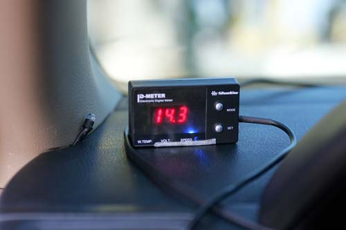 有了上述的耳聞或是親身經歷之後,便有車主動了加裝水溫錶的念頭,如果你正有此念頭的話,告訴你,不用再剪線剪管加裝儀錶了,丞桀電子是專精於各式各類儀錶設計生產製造的專業廠家,利用長年的產品經驗與專精的最新技術,提供消費者最佳的產品使用,也幫助許多賽事選手監控引擎運作狀況,使其屢創佳績,近年來也發現到近年車輛儀錶設計上的改變,也看出這潛藏的危機,為了提供一般車主能有更好的行車品質,在近期開發推出一款可多重顯示重要的水溫、電壓及車速資訊功能,只要車主按下其上的按鈕便可進行切換,且還可設定警示值,超過設定的警示數值,顯示器便會發出閃爍燈號與警示音,讓車主開車時可以專注於前方路況,而不需時常注意顯示數值是否超過。