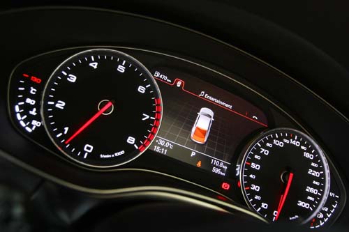 A7 Sportback在內裝設計方面採用了突破傳統的不對稱曲線設計,在A7 Sportback推出時,此一設計確實讓人相當驚艷,不過隨後新一代A6(國內預計第三季上市)推出時亦採用了相似的造形設計,我們推測此一設計將會成為新一代Audi的內裝設計主軸。在用料方面,承襲了A8奢華考究的模式,營造出十分豪華而雅緻的車內空間,多層次的立體儀錶板看來有如設計精緻的高級家電,儀錶板已經支援繁體中文顯示。