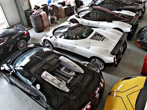 | 車庫內一次停上3輛Pagani、1輛Apollo與Bugatti會是什樣樣的感覺呢? |