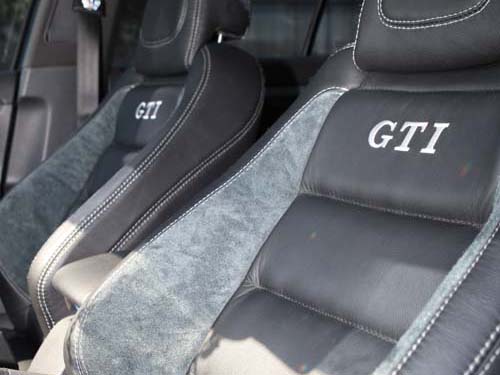| 適度的運用麂皮在車門內門板與椅皮上,更在椅背面繡上GTI字樣,兩者產生強烈質感呼應。 |