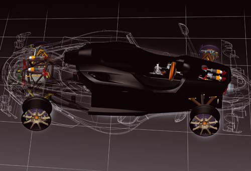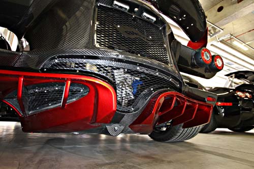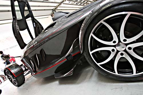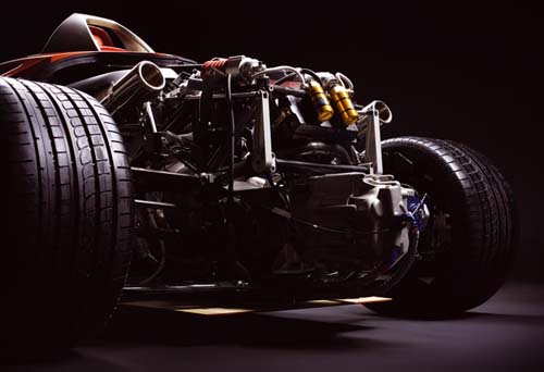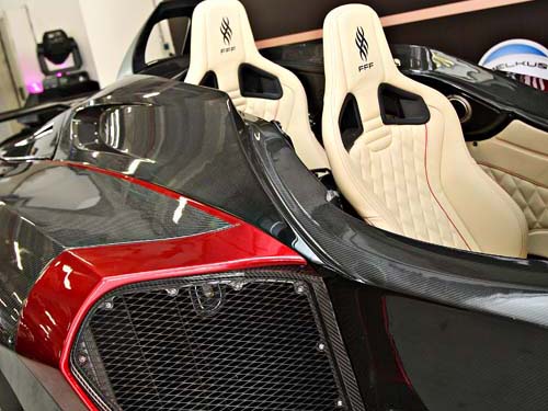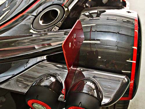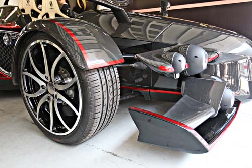 | 即使造型特殊但為了符合道路行使安全法規,其燈光設備還是巧妙融入空力外觀之中,就連車輪也都加上碳纖維擋泥板。 |
