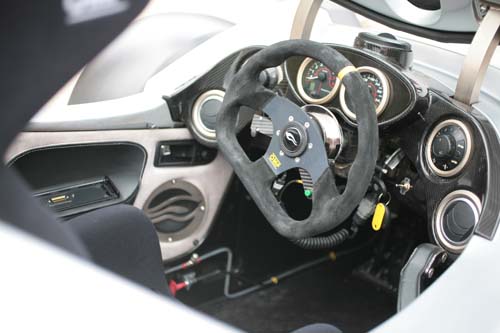 | 狹小座艙並沒有過多空間可利用,但包含賽車方向盤、儀錶、音響與冷氣等配備也還算一應俱全,尤其方向盤右側的旋鈕內藏有可切換720hp/550hp的秘密武器。 |