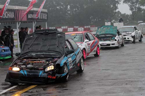 本站B2組參賽大爆滿,19部參賽車,只有16部進入決賽,因此有三位車手在測時排位賽後就必需在場邊吃便當看比賽,可見其競爭有多激烈!測時排位賽由G-Force Racing車隊36號盧宏漢以01:01.465摘下桿位,第16順位為永芳車業55號洪志賓01:04.418,值得關注的是前七順位,秒差都不到1秒,這預告著下午決賽的刺激與緊張,而前站冠軍川都車隊99號陳慶輝也將執行「冠軍退位制」,這又將賽事精采度提高許多。