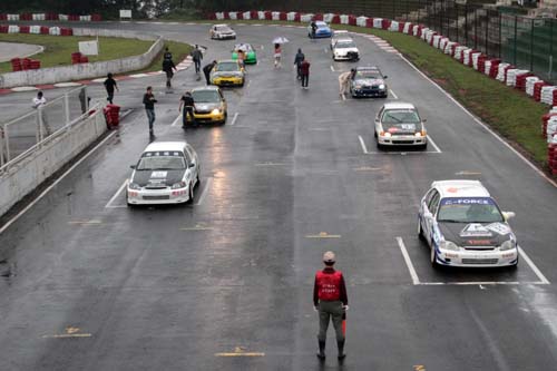 經過實戰證實想要在此組中勝出,車輛條件差異不大,人才是關鍵!同樣深受「冠軍退位制」影響的不只有B2與B1組,在A組中同理可證,RS Racing車隊75號黃晞展測時排位受到雨天影響落至第7順位,而G-Force Racing車隊新秀11號徐信湖卻是逆勢成長以59.548秒摘下桿位,跌破眾人眼鏡,正當眾人傻眼時,11號徐信湖再度讓專家們目瞪口呆,開賽沒多久又以桿位優勢搶下頭位,連續領先長達10圈之久,跟在後面的不是前戰冠軍75號黃晞展,也不是33號楊孟樵,而是RS Racing車隊26號游建祥,這10圈對戰,可說是新生代高手對決,26號游建祥一路緊貼,並不時發動攻勢,但11號徐信湖就是不放棄,不給26號游建祥機會,進入關鍵第11圈,26號游建祥終於忍不住將11號徐信湖頂開,但就在此時發生33號楊孟樵打滑碰撞輪胎牆事件,紅旗中斷賽事,因賽程還有5圈之多,事故處理後再度重新賽事。