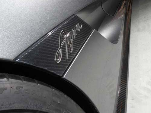 | 車側的大型進氣口後方,特別嵌入了標有「Agera」字樣的碳纖維飾板,下方的側裙也同樣為碳纖維材質製成。 |