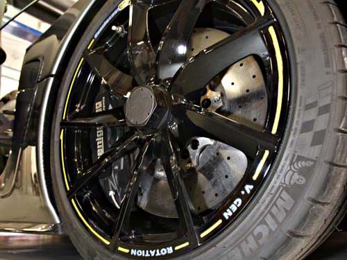 | 為應付4.7L V8雙渦輪增壓引擎的狂暴動力輸出,Koenigsegg特地幫Agera裝上了335/30R20的大尺寸後輪。 |