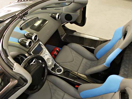 | Agera的駕駛室中則採用亮麗的雙色真皮包覆與大量的碳纖維飾板妝點,並加入如同賽車的多功能儀錶板,只不過中控面板讓筆者不自覺的想到i-pod。 |