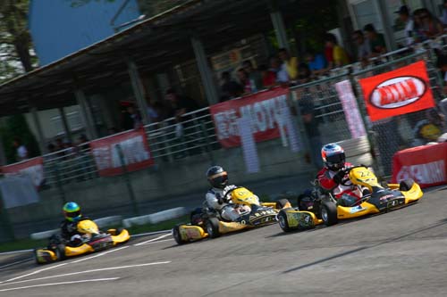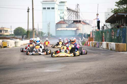 | 溪湖站去年冠軍兼場主蔡承揚與後方謝智全,此役使用PRD 125引擎位居第三集團。 |
