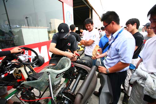 相較於第一站遇上寒流和暴雨,TKOC台灣小型賽車公開賽第二站前進溪湖K1賽車場,車手們面對的是傳統中台灣炙熱天氣,加上溪湖賽道以高速為主,能否發揮引擎實力及選擇正確齒比形成重要關鍵。溪湖K1賽車場去年曾經舉辦二場TKOC賽事,分別採用正跑及逆跑,故所有車手對此都還算熟悉,其賽道總長度大約1000m,光是主直線道就達到200m,可說居全國Go-kart場地之最,而路面寬度約8~10m之間,超車搏鬥並不會太困難,特別是來到大直線,引擎尾勁輸出至關重要,極速快的引擎往往可在直線底進彎前輕鬆超掉對手,前車甚至連掙扎的機會都沒有。由於中高速場地特性,齒比配置比國內其他賽道還要疏,若以前方小齒10齒為基準,後齒盤約82~84齒之間。