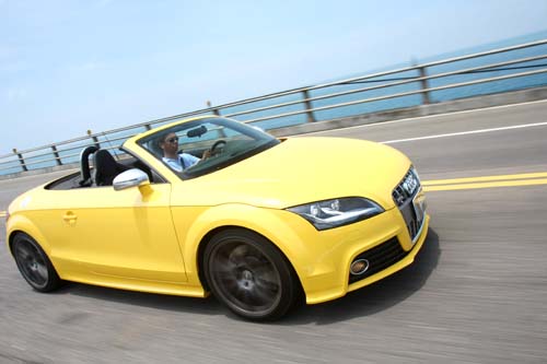 如同所有的Audi S車款,TT-S的內裝也加上了大量的跑車化配備,包括特製的儀錶、平底式小尺寸方向盤、鋁合金排擋頭與手煞車拉柄,RNS-E衛星導航主機以及兩張選用的可調式跑車座椅;由這些配件支撐起TT-S Roadster的車艙。敞篷車的悠閒感與內裝的戰鬥化配件形成強烈的對比,這不是一部讓你用手扶著門板撐竿跳進車艙的悠閒車款,它適合的是一雙開車手套與半罩式安全帽。如此的內裝陳設是為了搭配TT-S Roadster蘊涵在引擎蓋下的強勁實力,車上的2.0升TFSI渦輪增壓引擎跟一般輸出200hp上下的2.0 TFSI不太相同,為了符合TT-S Roadster的運動風格,這具引擎經過了大幅度的修改,渦輪增壓器的尺寸也比一般2.0 TFSI引擎更大,在經過徹頭徹尾的強化後,TT-S Roadster擁有272hp/35.7kgm的動力輸出,以小型敞篷車來說已是相當強勁,雖說車重比硬頂車款多出60公斤成為1475公斤,但強勁的動力仍讓TT-S Roadster擁有0~100km/h加速5.4秒、極速250km/h的實力。劉建宏