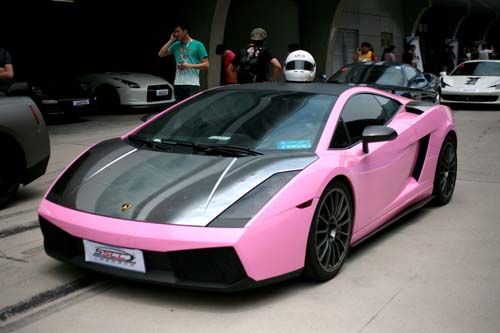 | 超跑嘉年華除了有一輛被「高高手」損毀的粉紅馬之外,現場同樣有採用相同色系的粉紅牛,配上引擎蓋貼上電鍍膜看起來相當具有配色美感。 |