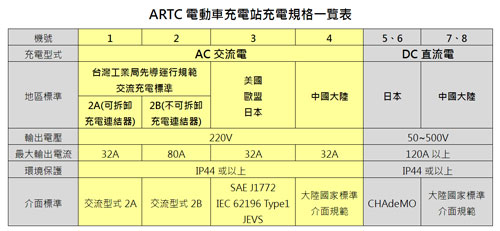 此座台灣第一的電動車充電站已於七月上旬動土,不僅是台灣電動車發展的重要里程碑,更具有全球創新性的意義,因為現今國外充電站之建置,多依各自地區標準僅提供單一充電介面規格;基於國內產業之主力市場以全球外銷導向,為充分提供國內業者完整的產品驗證環境,所以廣納國際各式快、慢速充電規格等一應俱全,不管是台灣工業局先導運行規範、日本CHADEMO、大陸GB、美國SAE、歐規IEC TYPE I等都可來電;隨著美國、歐洲充電標準之持續發展,未來也會於此充電站示範平台陸續規劃、建置。