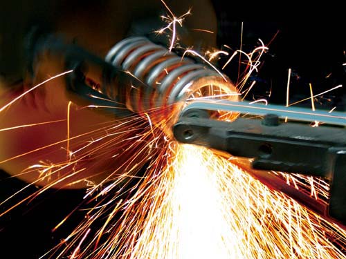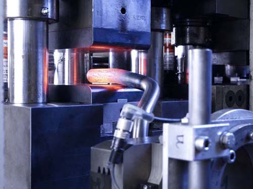防傾桿粗胚完成後兩端還需經過高溫加熱再以機具重壓,才能算是大致成型。