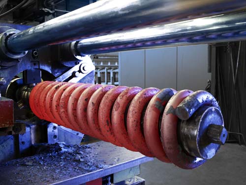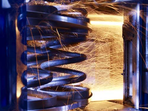 除了一般常見的冷壓成型彈簧,對於工業需求的重彈簧則需改以將近1千度的熱成型製程。