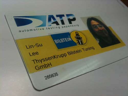 作為全球公認最難挑戰賽道之一的Nurburgring,在長達20.8公里的北賽道路段中包含許多綜合測試路段,這或許是各車廠與底盤套件開發商必要甚至是打響名號的試煉舞台,但是要充分模擬各種真實而複雜的路況,甚至極端環境都必須包含在內,因此唯有到專業測試場地進行,才能方便研發團隊隨時能針對產品進行調整。由於ATP絕大部分股權掌握在M.Benz車廠之中,因此場內可以看到許多M.Benz仍未上市或處於開發階段的測試車正在進行一連串測試,而屬於高度商業機密的因素下使得ATP從大門開始就有相當森嚴的戒備,所有入內人員除了需要有公文申請之外,額外製作的通行證也會嚴格規定所能進入的區域,給人感覺就像來到一座高度管制的軍事重地,像是任何可拍照的設備都必須經過許可才能攜帶入內並且遵循規定拍照區域,任何人一但違反內部規定最重情節就只能蹲蹲先進國家的苦窯了。