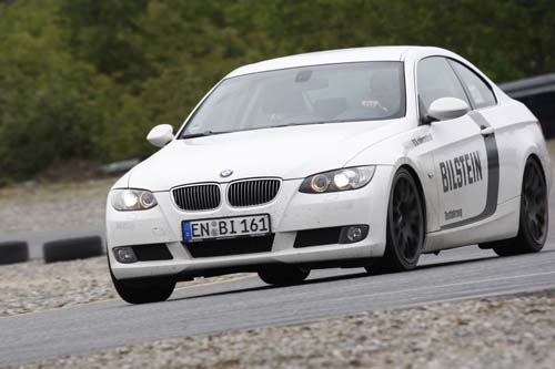 既然來到幾乎算是Bilstein的御用試車場,在完全封閉的測試環境下,德國原廠還特別在長達2.6公里的操控賽道路段上(Hanging Track)增加Bilstein全系列產品體驗,從原廠懸吊開始包含入門B6、B8、B10、B12與B16等系列搭配,藉由M.Benz W204 C280與BMW E92 330讓人充分感受同車型不同懸吊,在相同路段上對於操控表現的差異性。在六速手排與3.0升排氣量下,C280可說是動力相當充沛,但是車上所配置的普通胎在溼地上似乎完全無法提供所需抓地力,雖然大幅度增加了操控時的難度,但很明顯能從路面回饋與過彎動態中感受不同懸吊所呈現的特性,首先原廠懸吊雖然夠舒適,但幾圈測試後明顯發現過彎支撐力不足,被迫降低進彎時的車速。然而當換上裝有B12 與B16 Pro Kit的測試車輛時,其動態穩定性則有明顯的提升,有效減輕推頭現象並且減少車身回正時的晃動幅度,這也讓車速可以略為提高,另外像是BMW E92 330所搭載的B16 Ridecontrol系統,駕駛可利用車內設置的控制鈕隨時進行運動與道路阻尼切換,整體動態反應確實有明顯差異。就操控表現並非追求最高運動性就是最完美的匹配,對於不同駕駛方式與需求進而找出最合適的懸吊設定,才是一般消費者最佳的升級方式,以筆者實際試駕所有產品為例,反而B12 Pro Kit所呈現出的動態反應最符合個人所需,畢竟一套適合的懸吊系統對於不同駕駛需求或環境都會有所不同。