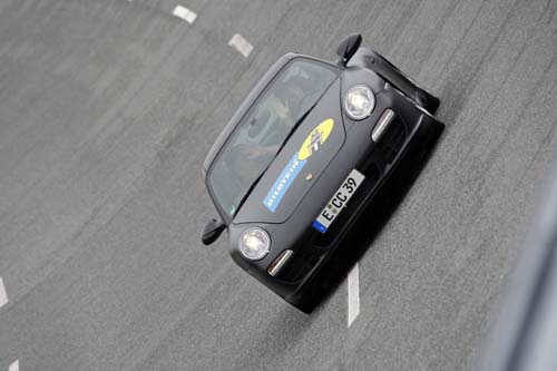 | Porsche 997 Carrera S在專業試車手駕駛之下,瀕臨極限的試乘感受實在讓人大呼過癮,而極為靈敏的操控表現還是需要好的懸吊系統來擔當重任。 |