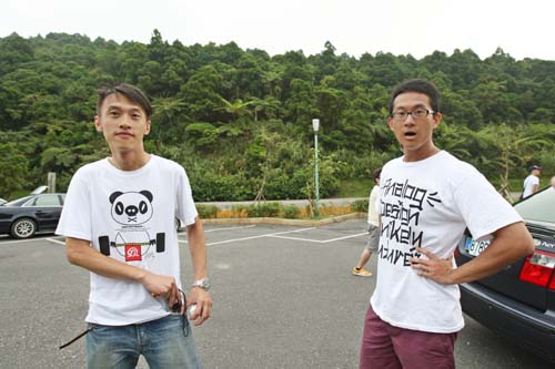 | 派大星跟海綿寶寶,不!不!這是本刊的業務小猴(左)及編輯小廖(左),今天也特別睡不著來跟筆者一同來感染這個氣氛。看看我們的陣容多麼陽光?(心虛ing) |