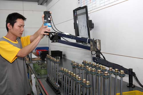 接著來到了特殊訂製區,這裡是專門組裝特殊訂製或高單價避震器的專區,由幾位廠內資深的技師負責組裝的工作,當經銷商接獲特殊設定,例如場地賽車、拉力賽車或甩尾車等,皆可依照不同的需求量身打造專屬設定,並可選擇倒插形式甚至外掛氮氣瓶等,而廖董表示這些特殊設定的避震器其實成本並不會比一般版本多很多,但是實際上售價卻是一般避震器的二倍以上,主要是因為組裝這些特殊設定的避震器必須額外請資深技師進行作業,一般生產線無法生廠這些避震器,甚至有的特殊設定一位技師一天只能做出幾組而已,因此成本也比較高,但是卻可以達到車主特殊的需求。最後來到了D2生產線的最後一站,也就是包裝區,這裡最特別的地方就是設置有網路連線的即時監視記錄系統與秤重區,以便讓下訂單的廠商可以隨時可以掌握商品的進度,而秤重的最主要目的則是為了確保包裝內的產品無缺件,因為之前做外銷時曾出現過商品包裝盒內缺件的情形,為了能讓訂購商品的客戶或消費者更安心,所以才會有這道特殊的紀錄手續。