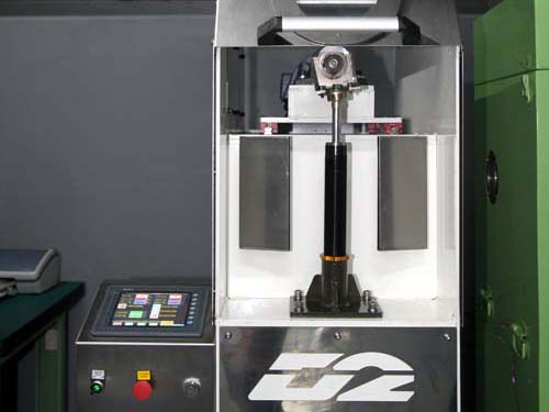 而D2另一項重要的產品就是多活塞煞車卡鉗系統,同樣也是在這裡進行製造、組裝。由於煞車部品攸關生命安全,因此在製造與組裝的過程中更是不可馬虎,而筆者印象最深刻的就是在我們參觀品管室的時候,在這裡筆者發現了大量要退給供貨廠商的卡鉗活塞,廖董表示煞車系統真的是太重要了,消費者既然願意購買D2的制動部品,就等於把自己的生命安全交給D2,而煞車部品與避震器不同,一但有瑕疵就會嚴重影響到生命安全,因此更有責任為消費者把關。接著廖董帶我們來到了一個小房間,裡面放置了兩台「避震器阻尼耐久測試機」,不過兩台型式不同,一台是針對雙A臂懸吊上下作動,而另一台則是針對麥花臣懸吊上下加左右晃動而設計,每日隨機抽樣50支生產線上的避震器筒芯,並進行30萬次往覆耐久測試,每月再抽驗一支進行超過百萬次以上的測試,驗證生產線上的產品是否有任何問題,以確保自家產品的品質經得起嚴格的考驗。