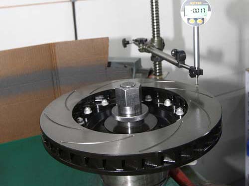 | 煞車碟盤也是全檢的產品項目之一,嚴格的檢驗盤面的高低誤差,如此才能夠減少煞車抖動狀況發生的機會。 |