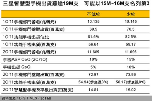 DIGITIMES Research分析師兼專案經理林俊吉說明,在三星電子未公布財報前,有數家市場研究機構及外資券商看好三星電子不僅將超越諾基亞,更有勝過蘋果的可能性,當時對三星電子第2季智慧型手機出貨最樂觀預估達2,200萬支。