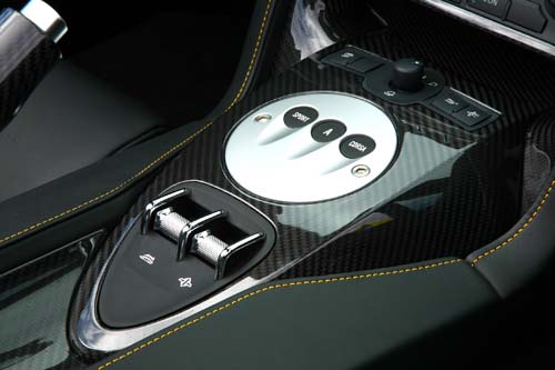 | 金屬材質的開關搭配碳纖維內飾板,強化賽車風味與獨特性,檔位則有Sport、Auto與Corsa(Race)的選項。 |