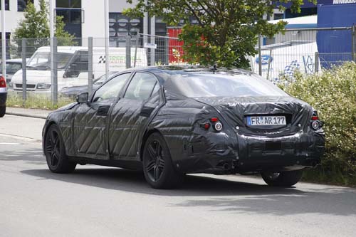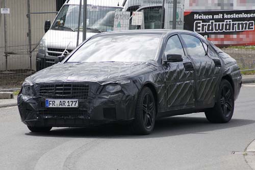 隨著天候狀況的逐漸炎熱,國外原廠的相關測試活動似乎也跟著活絡起來。經過多天的守候,我們的海外特派狗仔團隊又在近日的綠色地獄、也就是德國紐伯林北賽道,順利擄獲全車上下包覆著厚重的塑膠布料偽裝、正在進行操駕測試的S63 AMG車型。雖然隔著厚重偽裝,我們仍可清楚看到車頭大型進氣口、高性能煞車制動系統與AMG專屬輪圈等配置。目前雖然仍無法確認未來正式搭載的動力型式,但可以肯定的是,現行6.2升V8引擎將逐漸退出產品線,改由5.5升V8汽油渦輪引擎入替,而更高等級的S65 AMG則將搭載5.5升V8汽油雙渦輪增壓引擎,並同樣搭配AMG SpeedShift MCT濕式多片離合器 7速變速系統。