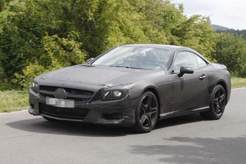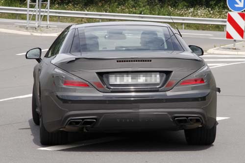 繼兩個月前所捕獲的M.Benz SL偽裝車型間諜照,我們又再次收到由海外特派狗仔團隊所傳回之最新訊息,而透過車尾的左右矩形四出排氣尾管、大面積進氣口與大尺碼胎圈與煞車碟盤配置,也可辨識出照片中即是屬於性能版本的SL 55 AMG。此次在德國紐伯林附近所拍攝照片,也顯示出SL 55 AMG已在緊鑼密鼓地進行相關動力與操駕測試任務,目前所知消息為M.Benz原廠已取消原本搭載的6.2升V8汽油自然進氣引擎,並轉換為全新研發、目前已經配置於同廠CL 63 AMG、S 63 AMG,與全新E 63 AMG等性能旗艦的全新5.5升V8雙渦輪引擎,並搭配AMG SpeedShift MCT濕式多片離合器 7速變速系統。